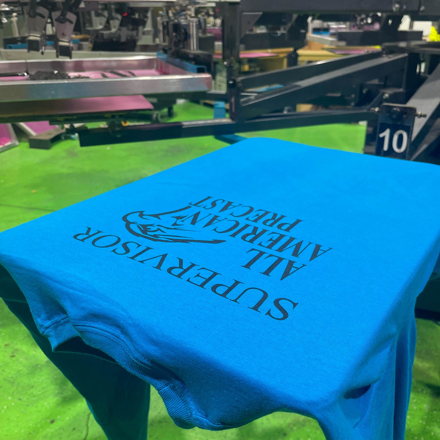 Traditionally called silkscreen printing; a printing technique where a mesh is used to transfer ink or dye onto a substrate, except in areas made impermeable to the ink by a blocking stencil. A blade or squeegee is moved across the screen to fill the open mesh apertures with ink, and a reverse stroke then causes the screen to touch the substrate momentarily along a line of contact. This causes the ink to wet the substrate and be pulled out of the mesh apertures as the screen springs back after the blade has passed. One colour is printed at a time, so several screens can be used to produce a multi-coloured image or design.